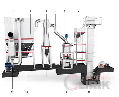 HGM8021中速微粉磨全套配置包括錘式破碎機(jī)、斗式提升機(jī)、儲(chǔ)料倉(cāng)、震動(dòng)給料機(jī)、微粉磨主機(jī)、變頻分級(jí)機(jī)、雙聯(lián)旋風(fēng)集粉器、脈沖除塵系統(tǒng)、高壓風(fēng)機(jī)、空氣壓縮機(jī)、電器控制系統(tǒng)。