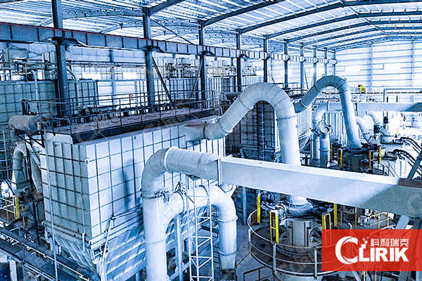 第三階段:研磨選粉機將粉磨后達到產品所需細度的石膏生粉送入沸騰爐進行煅燒,其余部分返回磨機進行再次粉磨直至合格。沸騰爐是建筑石膏煅燒設備中在我國應用最廣的設備。